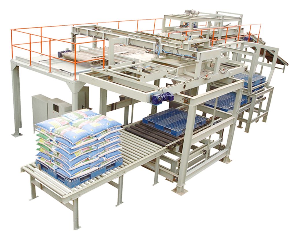 袋装包装:适用于编织袋、塑料袋、纸袋、吨袋等袋装产品,常见于粮食、化肥、水泥和饲料行业。设备可实现精准抓取与堆叠,保证垛型整齐、稳固,便于运输与存储。
