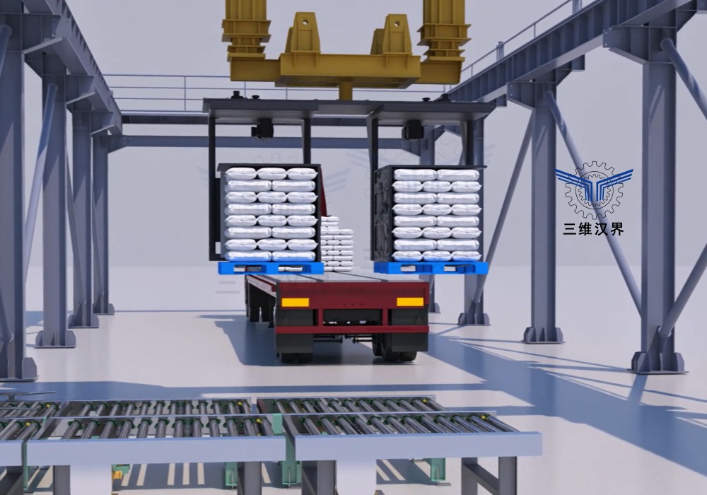 它的核心设计理念是:将水平放置的单元化货物(通常是码放在托盘上的纸箱、袋装物等),通过一个翻转机构,使其变为垂直状态,然后有序地、紧密地码放到运输车辆的车厢内。